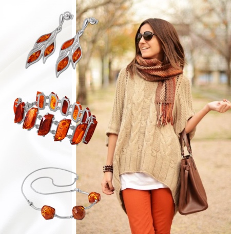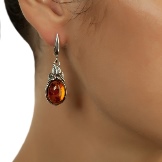 Light silver (sterling), which is easily confused with platinum, most successfully looks with light varieties of stone. Dark, almost brown amber is usually inserted in blackened silver. There are even silver earrings with red and brown stones. Such a number of modifications opens up great opportunities for choice.