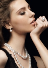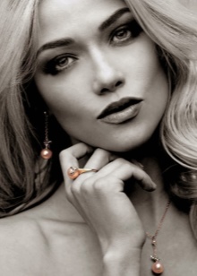 Fatal beauties also can not ignore the pearls. For an evening out, choose a black dress with bare shoulders and earrings with pink pearls. A bright emphasis on the lips will help make the image unforgettable.