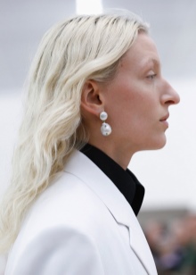 - For everyday looks, it is better to give preference to carnations, pusetas and other simple models that can be worn with dresses and cardigans, as well as sweaters or turtlenecks. And, of course, luxurious jeweled inlaid earrings with pearls will become a real decoration of any evening look. Emphasizing the femininity and sophistication of its owner, they will not be left without attention at any event.