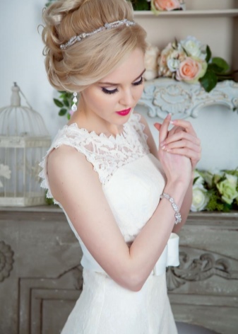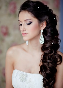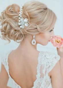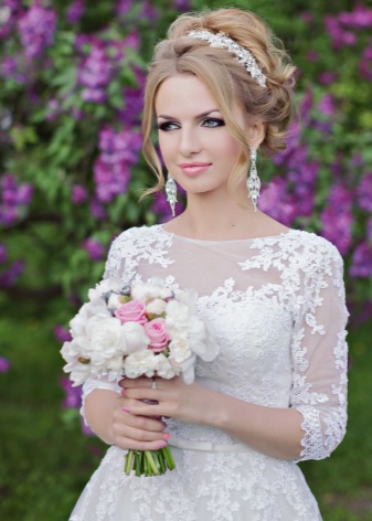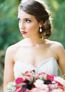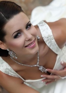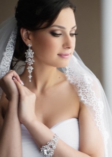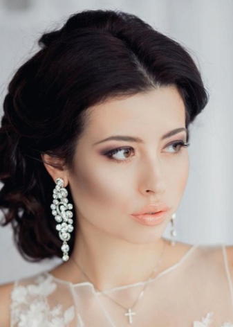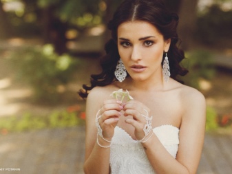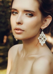A hairstyle is one of the decisive elements in choosing wedding decorations, especially earrings. If on a festive day you will be with a high hairdo, then when choosing earrings it is worth considering the shape of the face. If you prefer loose hair, then long models will be a good choice. Today, the trend is earrings in the form of a string with a massive element at the bottom.