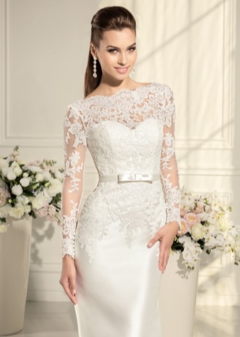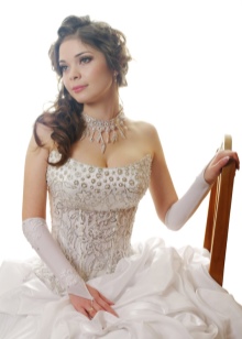 Important is the type of neckline of a wedding attire. For a dress with a deep neckline, you can choose earrings of any shape and size. If the outfit has a collar or volumetric decor near the neck, then only small, graceful jewelry will do. Large earrings will not only be uncomfortable, but also add piles.