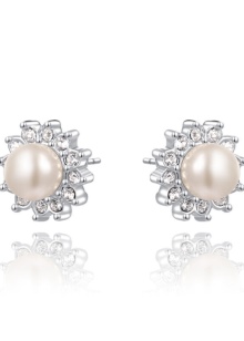 Earrings with pearl decor are not only presented in a simple design. Models look gracefully and attractively. They can be supplemented with diamonds or rhinestones. Floral metal elements are also often used by designers to decorate wedding earrings.