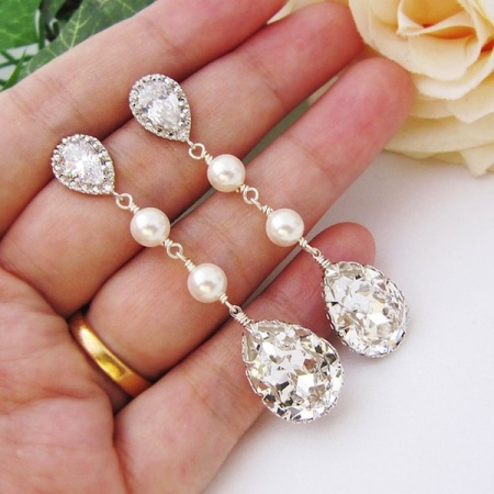 Often, brides give preference to classics - exquisite earrings with pearls. Long models never go out of style. Each season, designers offer new options.