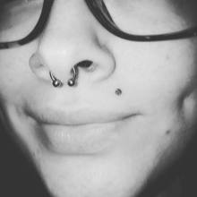 Smooth thin stick-crossbar with two wound balls on the edges. The length can reach 5 cm. The puncture site completely controls the value of this parameter and sets the tone for the piercer. Ideal for extreme nose bridge decoration.