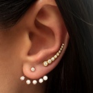 Elegant earrings will look great against the background of fashionable flared cut trousers, loose shirts, denim overalls or any other clothes with prints.