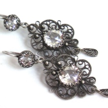 Antique accessories in harmony with outfits in retro style, new look or pin-up. Exquisite earrings will look great with: