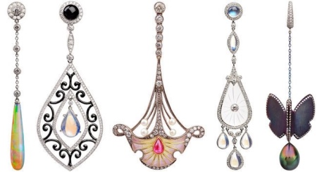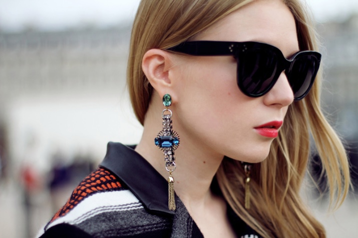 Earrings - pendants look very sexy and playful. They are also called jacket earrings or jackets. The most common are products in the form of a circle, ellipse or drop.Such accessories in vintage style will be the perfect solution for a socialite who loves to create coquettish images in retro style.