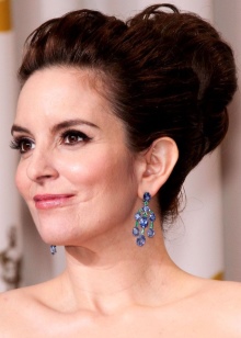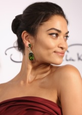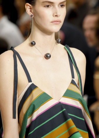 - For the output outfit, you can choose original pendants of various shapes that will match the color of the eyes with makeup. They are able to perfectly complement a strict dress with a sexy neckline. This ensemble was chosen by Jennifer Aniston