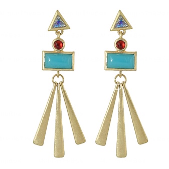 These earrings consist of several geometric shapes. They can be completely different and often complemented by colorful details: stones or plates.