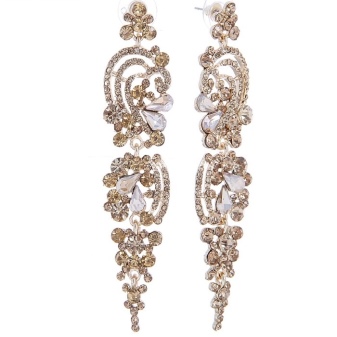 - Chandeliers are interesting earrings that consist of several tiers. They can be complemented by various decorative details, which are placed like a chandelier. In such accessories, decor and decorations expand downward.