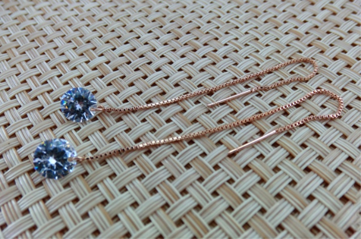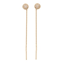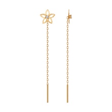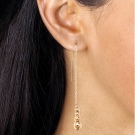 - Gold earrings - chains with stones at the base. Such an accessory will be a great addition to both the business image and the evening outfit. Usually used pearls, cubic zirconia, diamonds. There may be other stones, so you can always choose a shade of stone so that it blends perfectly with your image or matches the color of your eyes;