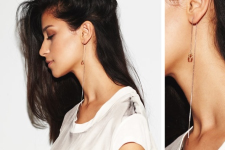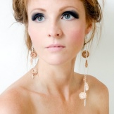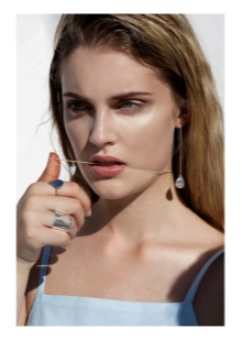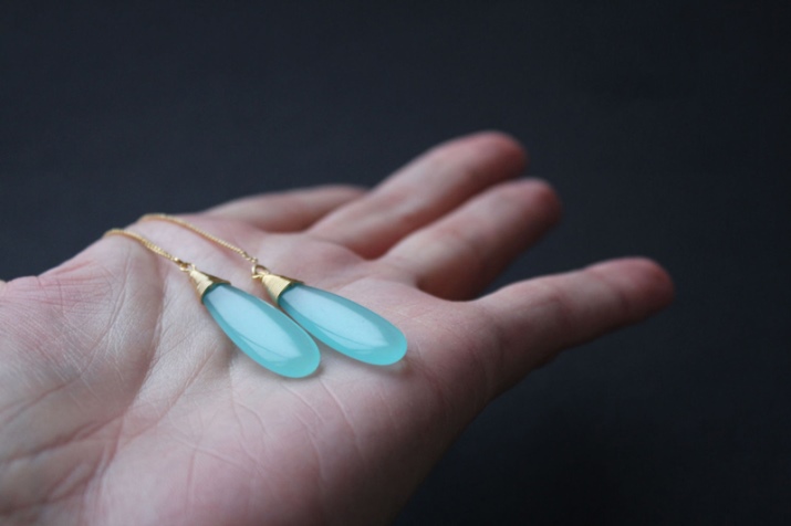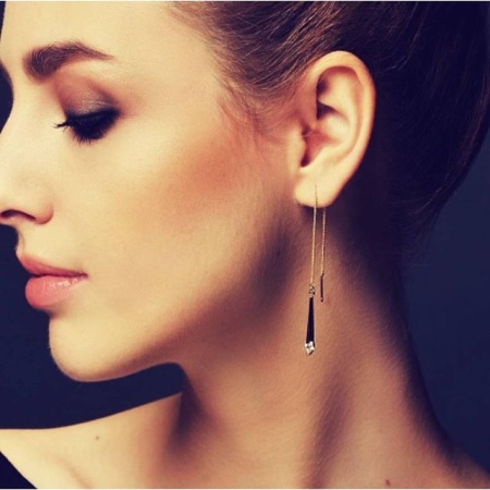 Earrings decorated with stones and long chains are more suitable for an evening out with a beautiful dress. Please note that chain earrings are able to emphasize the elegant line of the neck and make it visually longer, so you should give preference to a high hairstyle. Loose hair will close the earrings.