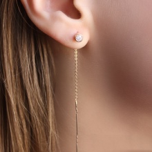 Another significant plus - they are very convenient and comfortable due to their structure and are suitable for constant wear. Such earrings do not have a clasp; a flexible chain is simply threaded into the opening of the earlobe.