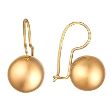 - Gold earrings in the form of an arc with a ball are neat and original. We can say that this product is "with a twist." It is not heavy, stylish and appropriate for various events, whether it be a fun party or a solemn meeting. The product will look beautiful with a deep neckline and high hairdo.