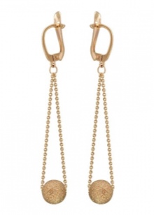 - Earrings with a small hanging ball on a chain look concise and stylish. They are made of several elements and look gently, as they emphasize the length of the woman's neck. The decoration is ideal for evening dresses and for costumes that can be worn for important events. Pendants “pendants” differ from each other in design and stylistic orientation. Despite the complexity of the design, they do not create heaviness in the ears.