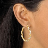 Gold track earrings will help to add a twist to the woman's image. Jewelry of this form can be considered universal, suitable for any age, appearance and style of clothing. Due to its elegance, compactness and simplicity, earrings-tracks always remain relevant.