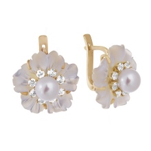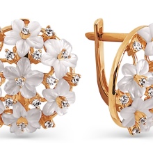 Gold earrings with mother of pearl can be worn as an independent accessory, or can be supplemented with a ring, bracelet or necklace. Earrings with this stone will look beautiful on women of any age, older ladies are advised to choose miniature models with strict-shaped mother of pearl in dark or light color.