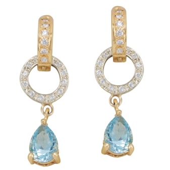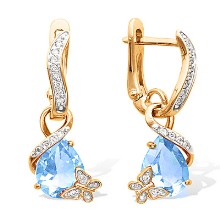 The most popular among gems is blue topaz. Representatives of the fair sex often choose earrings with gems of golden pink, honey and blue, resembling a ball, drop, star, flower or rhombus in shape.