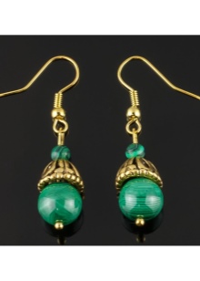 Sophisticated jewelry masters believe that malachite earrings framed with gold do not look as bright as in silver, in addition, the stones in gold are usually smaller in size. However, if you select stones of dark colors in the form of rhombuses, squares, rectangles, pendants or medals, then the seemingly broken harmony will be restored.