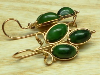 Jade earrings will effectively complement both evening and casual outfits. You need to select the decoration based on your color type. Jade of green shades, framed by gold, will suit green-eyed women.