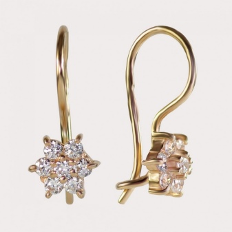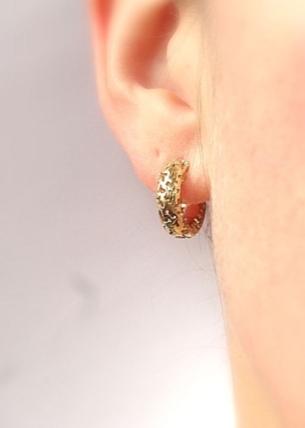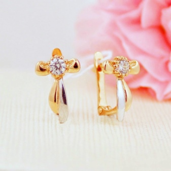 For those who want to attract admiring glances even on a cloudy day, gold earrings with a diamond face, flickering like diamonds, are suitable. It is this effect that makes these earrings one of the most popular for several consecutive seasons. The light weight of jewelry allows them to be worn not only by girls, but also by little girls.