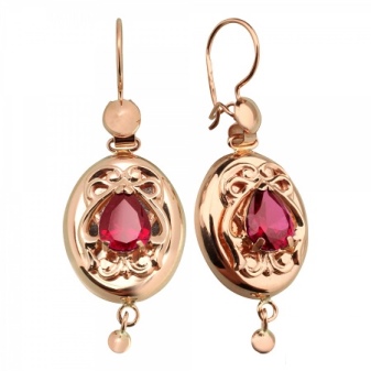 For girls who like to experiment with their appearance, gold earrings with corundum are suitable. Saturated wine shade of the stone will create unexpected images: bright and stylish, delicate and independent.