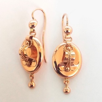 “Samovars” earrings made of gold are one of the latest jewelry craftsmanship technologies. In shape, this decoration looks like a ball, on one side of which there is a drawing - a print or a stencil (optional) in the form of a birch or maple leaf, an anchor, a bird's wing, sail and other patterns.