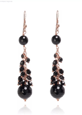 For onyx earrings, massive stones of elongated, oval or square shape are used. The contrast of the gold frame (in a circle or as if going beyond the edges) and the stone mesmerizes and captivates. Gold onyx earrings are recommended to be worn by those who want to emphasize the mystery and power of their nature.