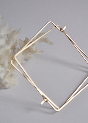 - For owners of all types of faces, smooth square earrings-rings are suitable - this is a kind of classic in the interpretation of modern designers. Such a decoration for the ears will be appropriate both day and evening. It is only important to choose the right size.