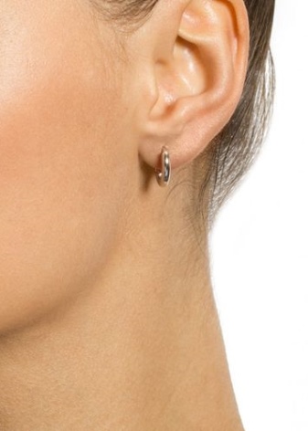 - To work in the office, wear small earrings, rings, they will look stylish and restrained. Daredevil girls can recommend large-sized earrings-rings. Not very wide models with rings will help visually reduce the face and soften its contours.