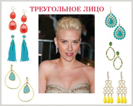 - for a face in the shape of a rhombus or rectangle, the best solution would be jewelry with a rounded bottom.