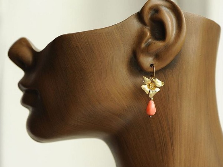 Coral is not a gem, but it will be appropriate in earrings for women of all ages and any social status. For everyday wear, you should choose gold earrings with coral in the form of small rings, and for evening wear - pendants, chandeliers.