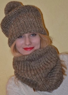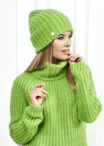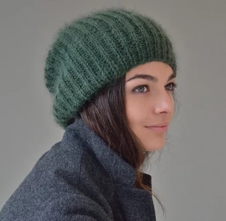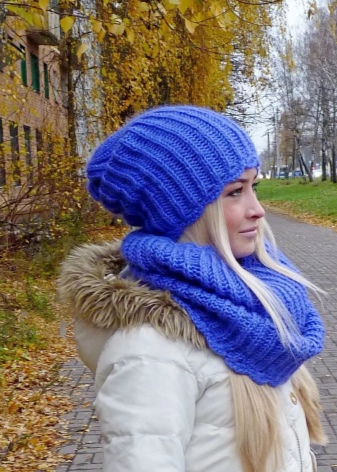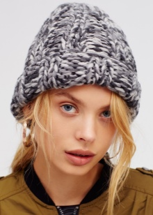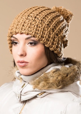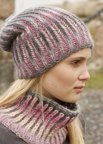 Another variation of the decor is semi-English viscous, in this case the hat acquires an even larger volume due to the knitting structure.
