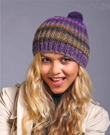 For young people, a hat can be made with a two-color viscous, or a motley combination of threads, to create transitions and an ombre effect.