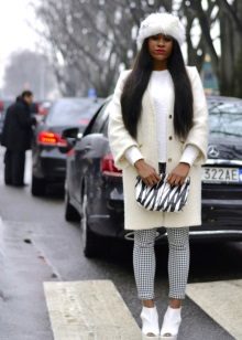 Pay special attention to shoes, as in addition to outerwear, it is one of the most visible attributes of a winter street look. With short products, you can safely wear over the knee boots and high heeled boots, ankle boots. Deliberately rude and simple shoes should not be combined with chic fluffy hats. For fans of hype - sneakers complete with a loose coat and a boyar hat.