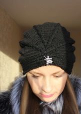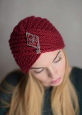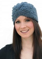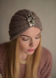 As for the pattern of knitted hats in the form of a turban, the following techniques are popular: ordinary hosiery, pearl drawing (or “rice”), English, French, embossed elastic, 2x2 volume elastic. These hats are knitted with embossed braids, a three-dimensional braid. Exquisitely look elements of an openwork pattern.