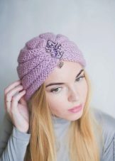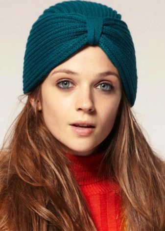 By the way, if you knit a turban of thin yarn on your own, you also need to make an additional base of more voluminous threads so that the hat holds its shape (make it with a garter stitch).