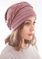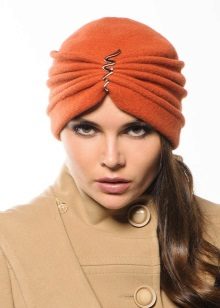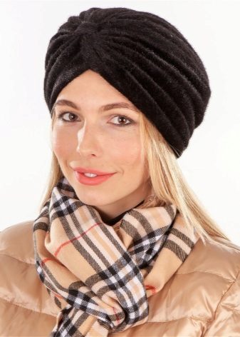 In recent years, this accessory is back in fashion and is not going to give up its leadership position. And for the convenience of fashionistas, a hat was invented that outwardly copies the shape of the turban - there is no need to waste time tying it. This hat is permissible to wear in all seasons, it is very popular even in warm weather.