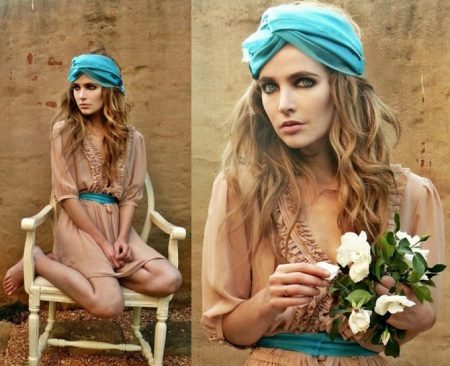 A turban in combination with a short dress or sarafan will create a flirty image that will correctly complete sandals or sandals.