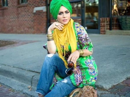 Fans of shocking can create the image of an oriental woman, adding a hat in the form of a turban with harem pants, a dressing gown or a spacious tunic. To add the appearance of oriental flavor, complement your look with massive earrings and other jewelry.