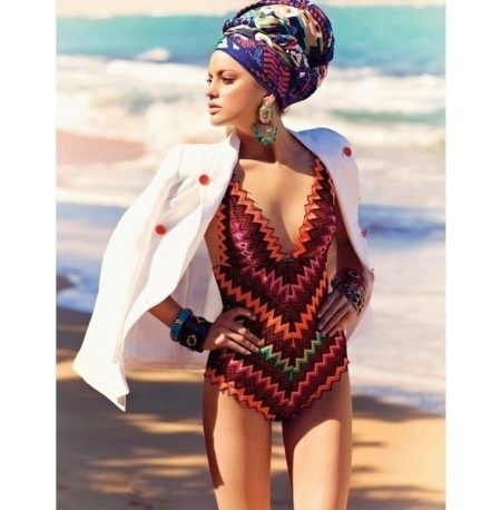 A turban with a swimsuit will set you off on the beach, creating a playful attractive look, in addition, this is a great protection from the scorching sun.