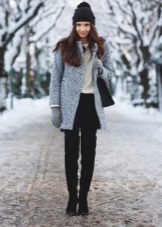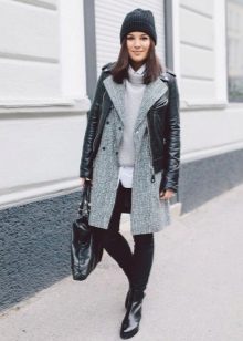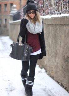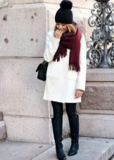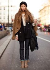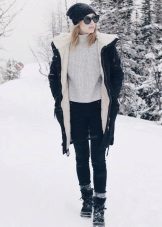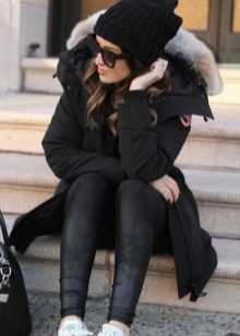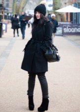 A black knitted hat with a pompom will go well with a khaki parka, a dark trench coat or a bright sports jacket, and it can also be worn with a business-style coat. A laconic black beret will complement a cloak or a fur coat, and a cap with earflaps will complement a puffy vest or a shortened down jacket.