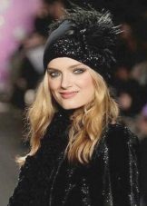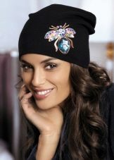 The most relevant decor for a black hat is shiny elements. Since the black color absorbs light rays, rhinestones, sequins, stones, golden and silver threads against a dark background look appropriate and did not go.
