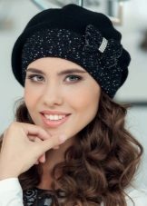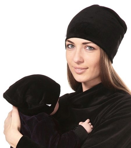 Black caps made of velor look very nice - soft, wear-resistant and very durable. The velor villi shimmer beautifully in the sunlight, look very beautiful and warm their owner very well. Velvet overflows of velor fabric look luxurious, and such a hat is self-sufficient and does not require additional decorations.