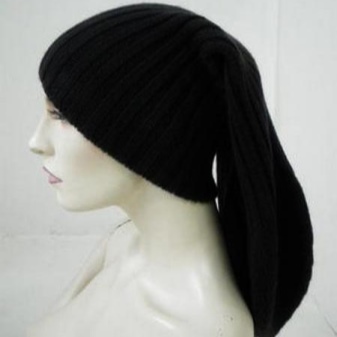 Initially, it was a headdress for sleeping, but the designers with a confident gesture brought a hat-cap to the streets of cities. Long black models that fall down almost to the shoulder blades are especially spectacular. This wardrobe item is for courageous ladies who love extravagant solutions.