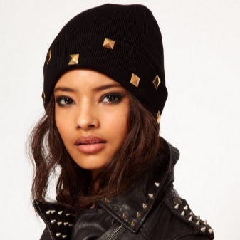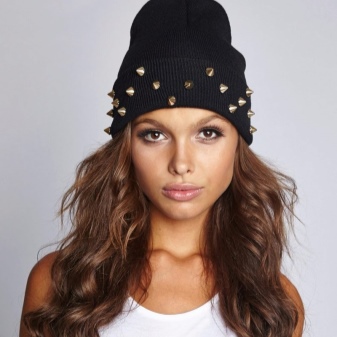 Another type of black hat decoration is plastic or metal rivets. The first can be multi-colored or black, changing only the texture of the product, metal rivets can be silver or gold, polished to a shine or aged. Beads also returned to fashion - the caps embroidered with small or large beads look very feminine!