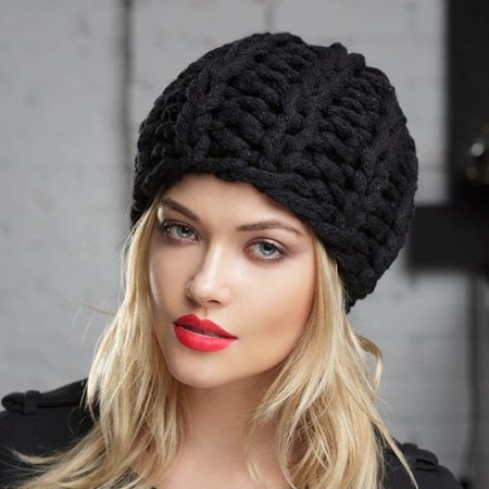 A turban, especially when knitting with a large English rubber band, is the most fashionable trend. The lady in such a hat will be associated with oriental luxury and grace. Stylists advise wearing such a style with a fur coat or fitted coat.