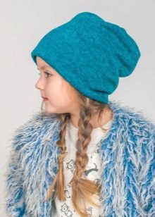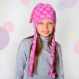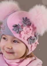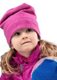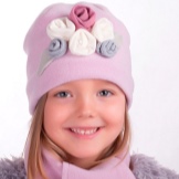 These hats are readily bought by children. Parents are satisfied with the fashionable and modern design of fleece hats. Mothers of girls like the rich decor of products: original knitted flowers, shiny pebbles, bows.The girls themselves like models with the addition of lurex threads, which add a beautiful shine to the product.