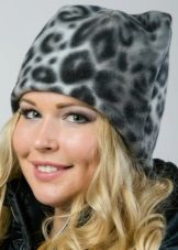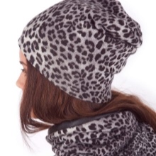 Animal fleece beanies with animal leopard prints are popular., also a black and white stripe, khaki models are in demand among the male audience. Moreover, such a “military” print can adorn only a wide lapel of a hat of black or gray color. In addition, the stronger sex usually chooses hats of restrained tones (black, dark shades of gray, blue, brown)