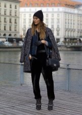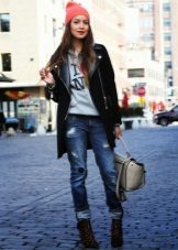 The universal thing is a fleece stocking cap. Due to its unisex style, it is combined with any urban-style clothing. Shoes should be sustained in the same direction - choose options on a flat sole.